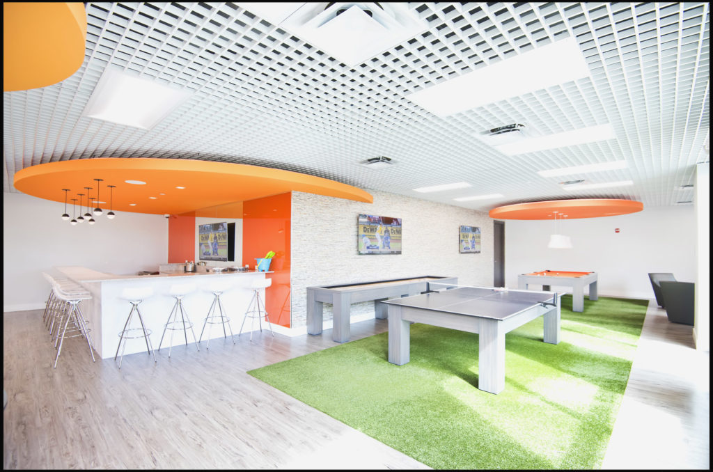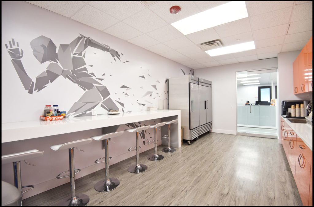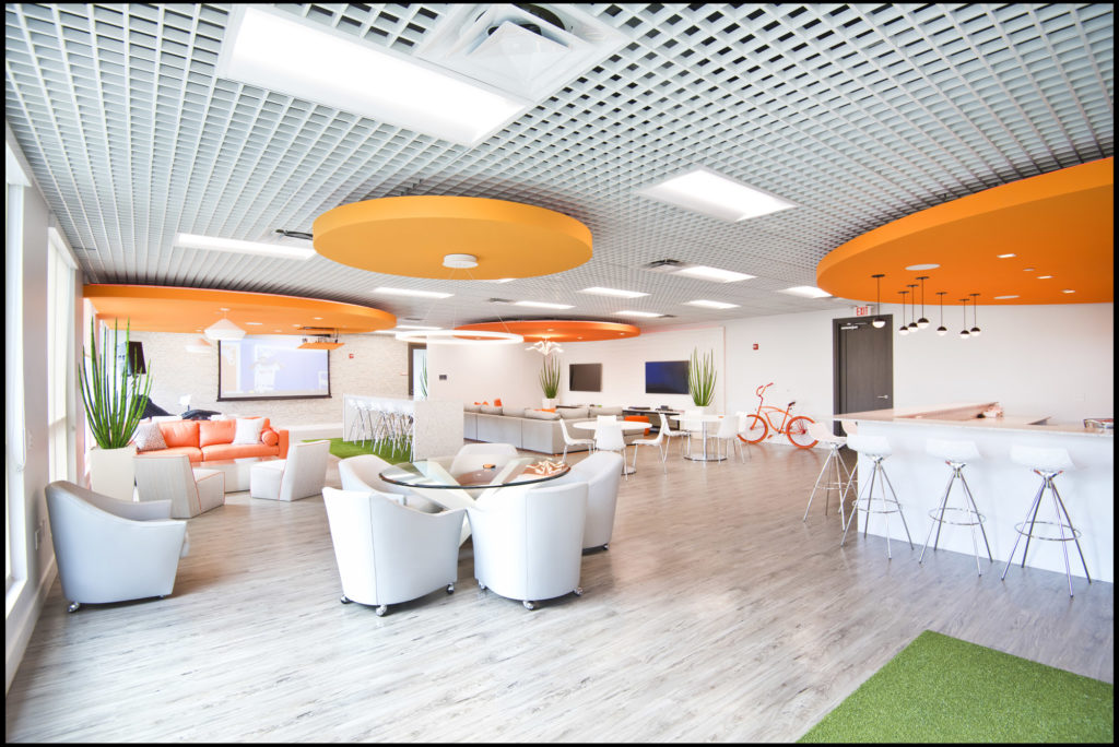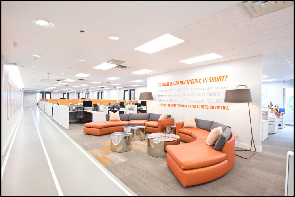 The 75,000 square foot facility features an art deco lobby, upscale cafe, spa-like amenities, employee lounge, high-tech boardroom, franchisee training center, a fitness lab and IT support center along with a full Orangetheory Fitness studio for employee use.
